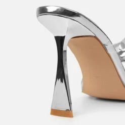 Add some flowers to your shoedrobe. Featuring a pointed toe, flower trim, clear strap and a flared heel. These mules will keep your fits blossoming.