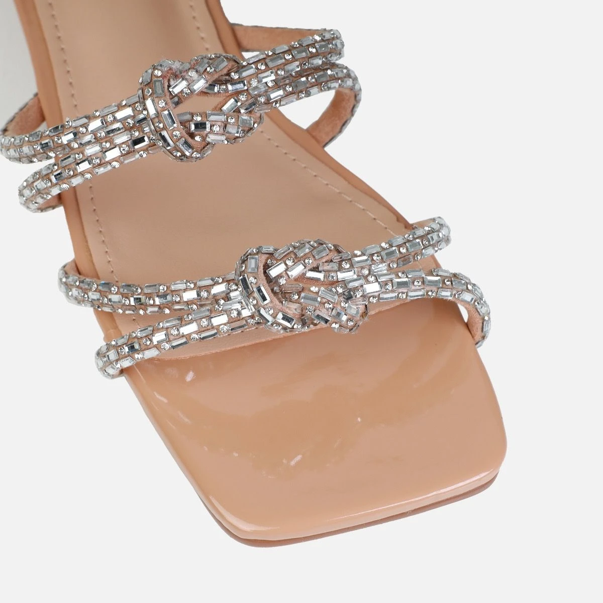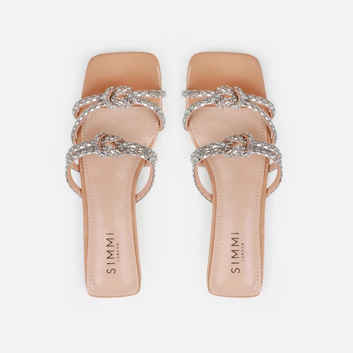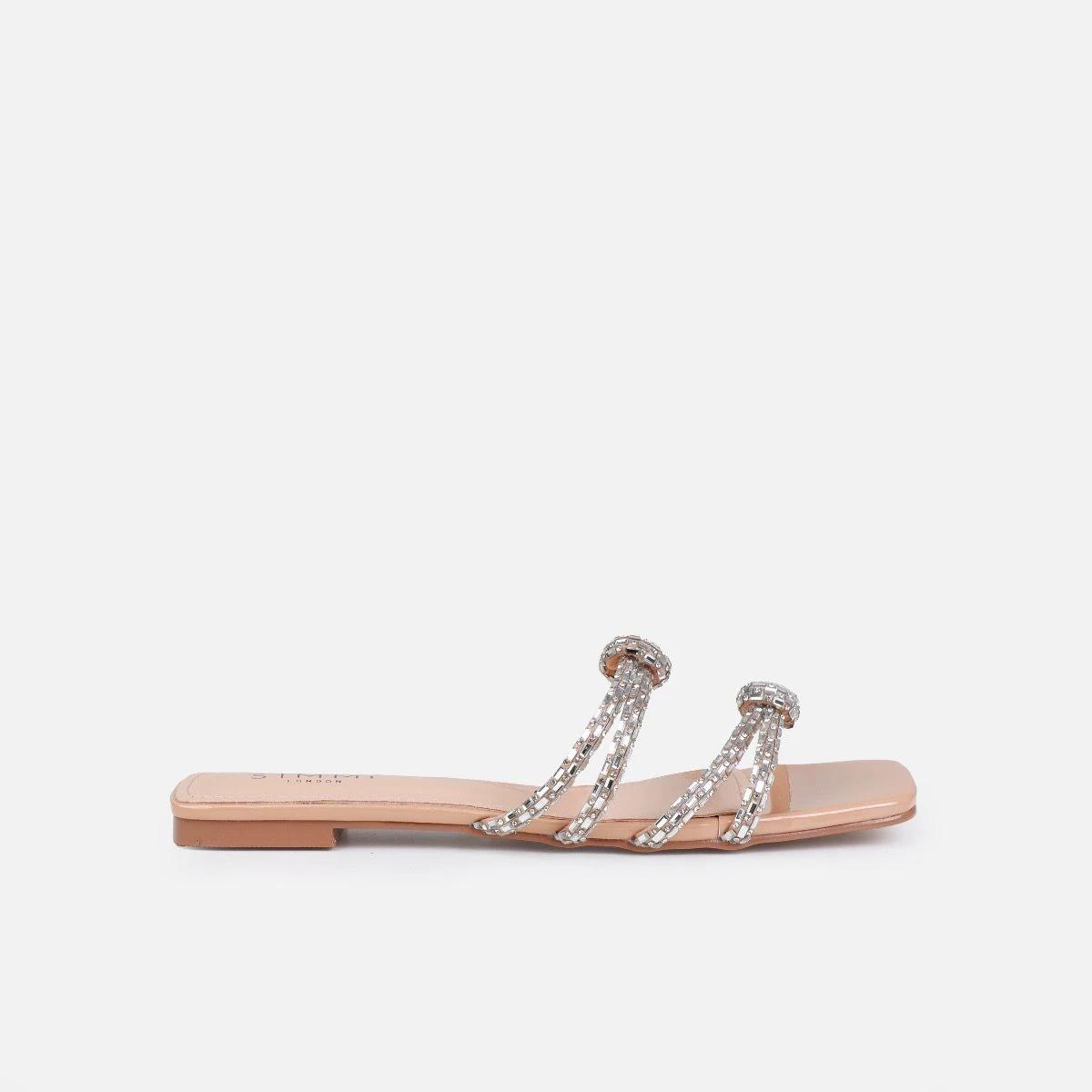 Your dreamy flats are on the way! Featuring a square toe and double diamante gem knotted front straps. Wear these for all your summer occasions.