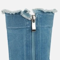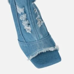 Invest in these denim ankle boots this season. Featuring a square toe, peep toe, inside zip and a stiletto heel. Wear these with your denim fits or oversized statement jackets.