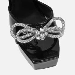 These platform heels are a statement! Featuring a square toe, diamante bow, ankle buckle strap, platform and a stiletto heel. Wear these on your next night out.