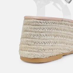 This is everything we want in a wedge. Featuring a clear front strap, clear ankle buckle strap and an espadrille wedge. Wear these with your spring/summer denim fits.