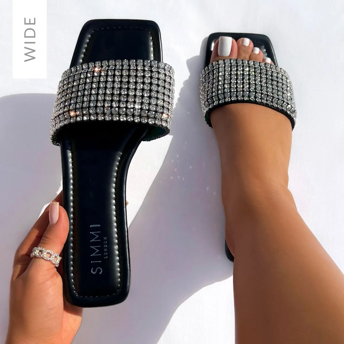 Want a pair of these? Featuring a square toe and diamante front strap. Perfect for all your summer plans!
