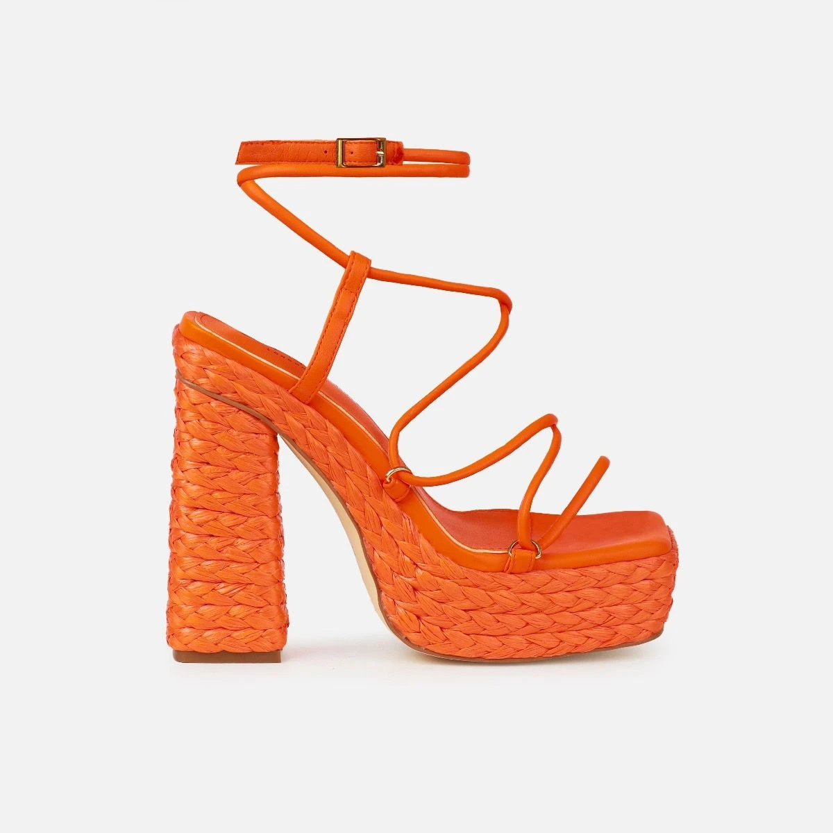 Summer getaway pending in these platform block heels. Featuring a square toe, ankle buckle strap and an espadrille platform and block heel. Wear these with bikini’s or cute co-ords.