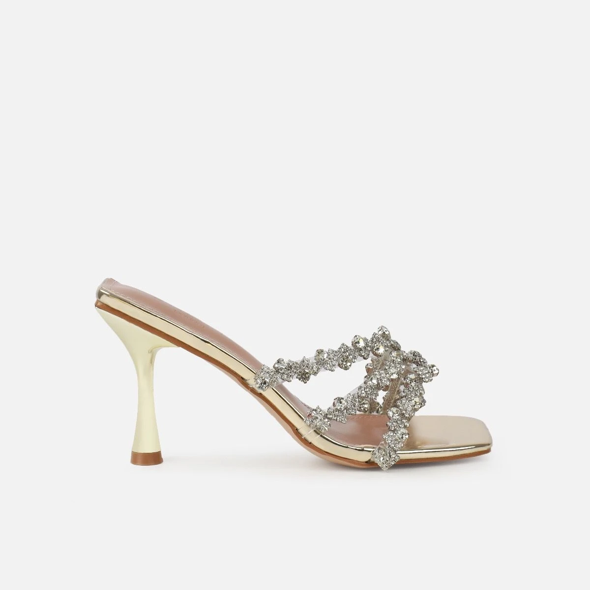 The perfect mid heels for all-day comfort.Ā Featuring a square toe, a diamante strap and a stiletto mid heel. Wear these diamante mid heel mules to weddings, events, and date nights.
