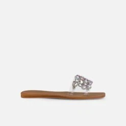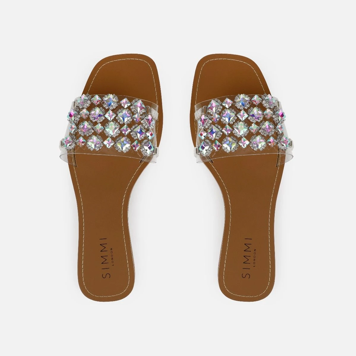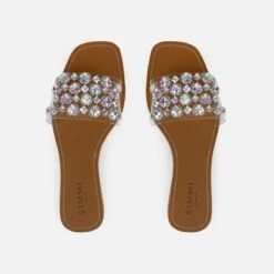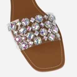 Make your summer glisten in these gem flats. Featuring a clear front strap with iridescent gems and diamantes. Team yours with matching diamante accessories.