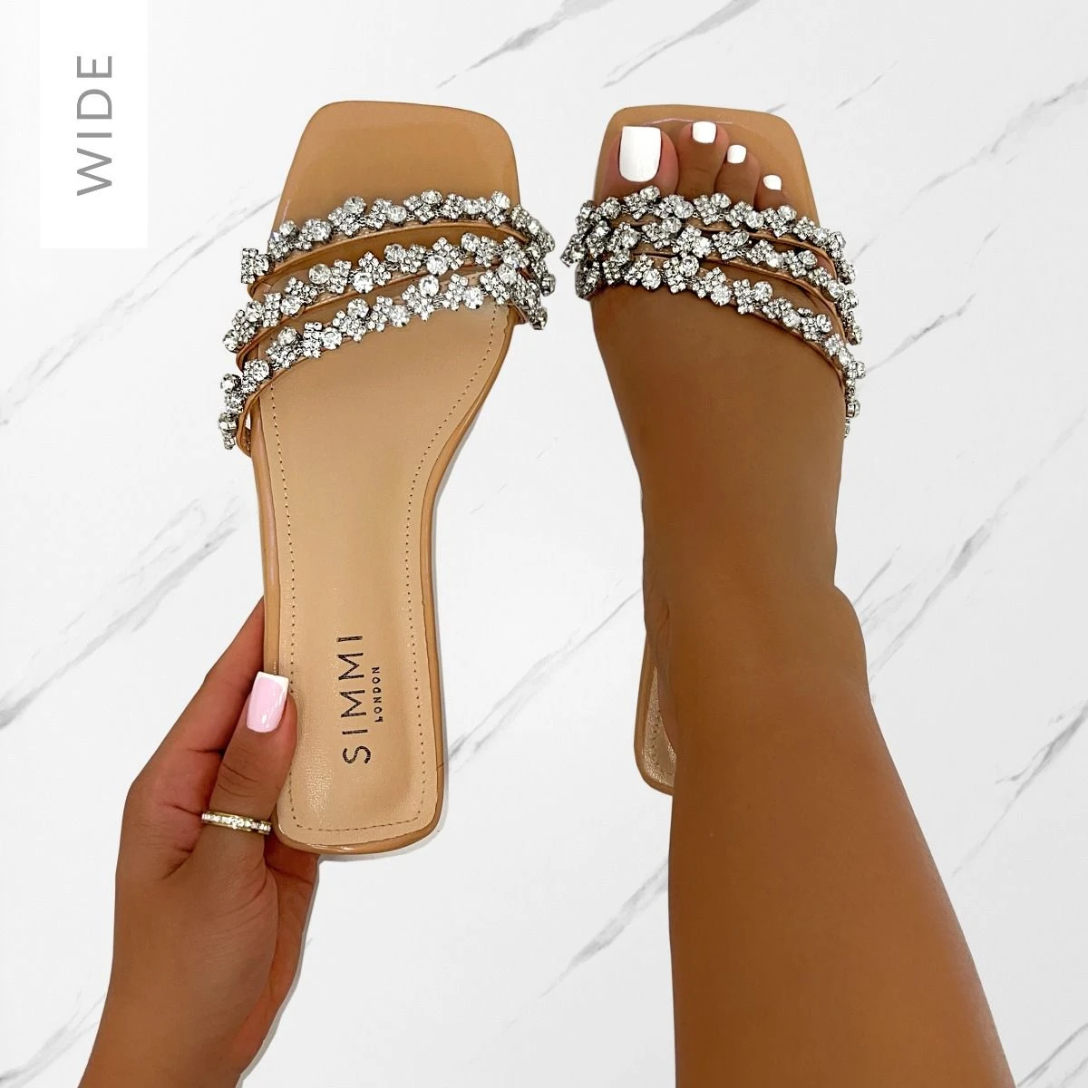 Sandals for your suitcase. Featuring a square toe and multi diamante front straps. You’ll be wearing these all summer!