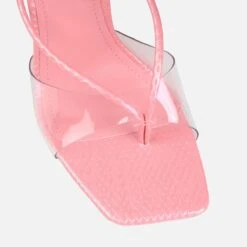 These toe thong mules are a new FAVOURITE! Featuring a square toe, clear front strap, toe thong and a stiletto heel. Wear these to your next wedding, date night, dressy brunch and more!