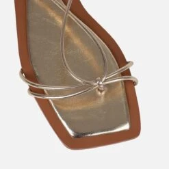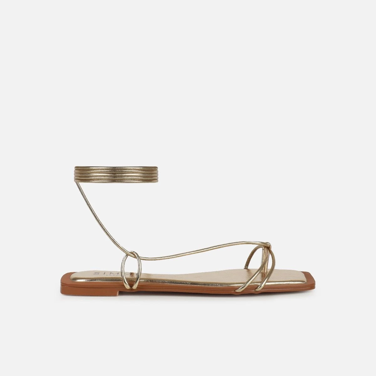 Lace up sandals that stay in season. Featuring a square toe and metallic lace ups. The perfect sandals for any summer event: pool parties and beach dates.