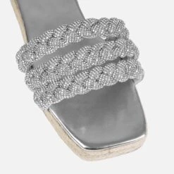 Our current obsession are these diamante espadrille flatforms. Featuring a square toe, diamante braided front straps and an espadrille flatform. Wear these to the beach, holidays, brunches and more.