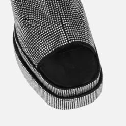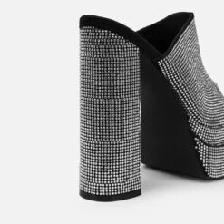 be the star of the night in these diamante platform mules. featuring a square toe, diamante double platform, front and block heel. wear with your dressy fits.