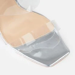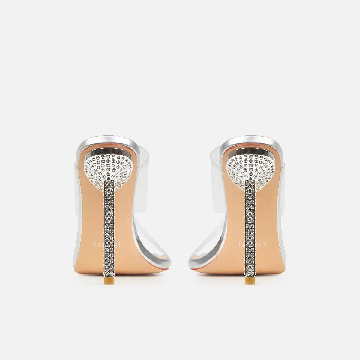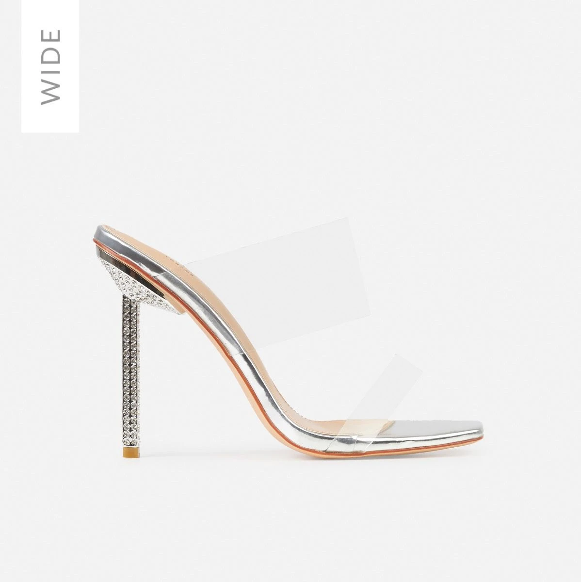 Your new staples are these! Featuring a square toe, clear front straps and a diamante stiletto heel. Wear these with cargo pants and a crop!