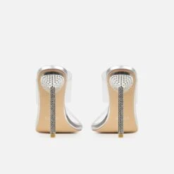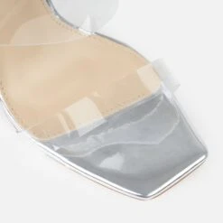 your new staples are these! featuring a square toe, clear front straps and a diamante stiletto heel. wear these with cargo pants and a crop!