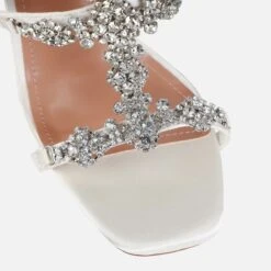 These diamante heels are beau-tiful. Featuring a diamante front trim with buckle fastenings and a stiletto heel. Wear these with satin mini dresses and matching diamante accessories.