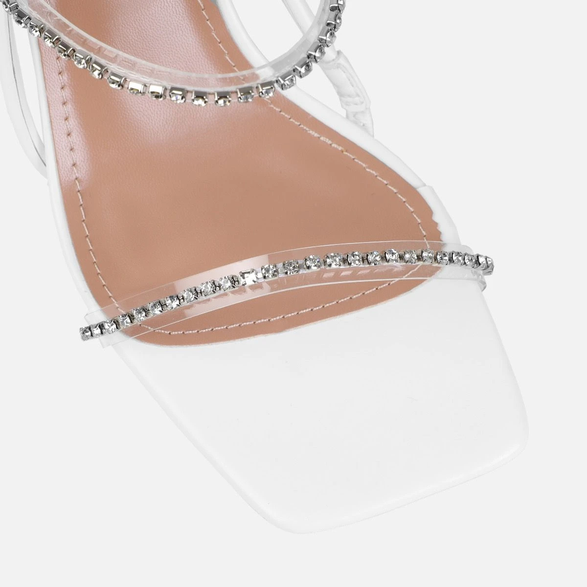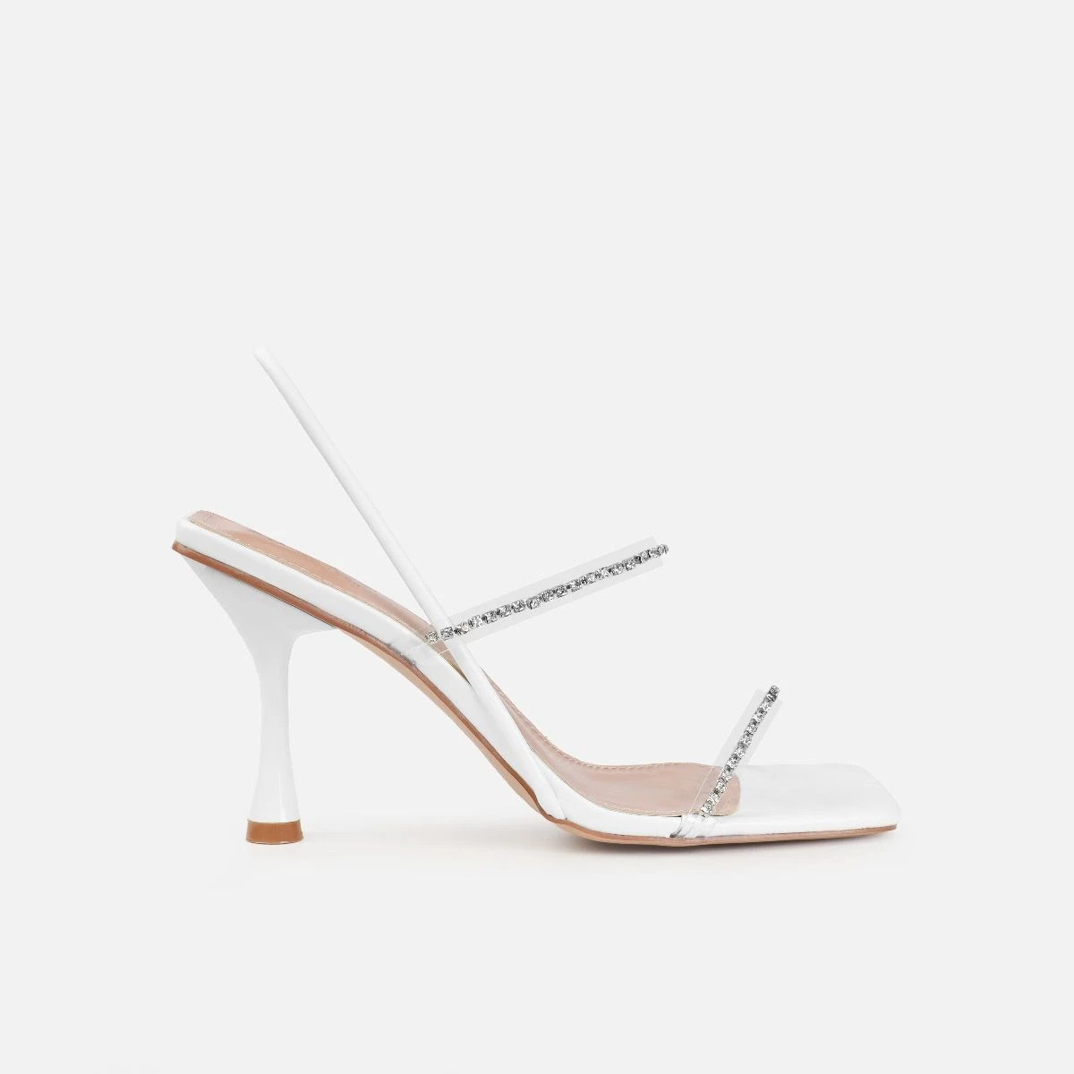 Our favourite diamante mid heels. Featuring a square toe, diamante straps, slingback and a mid stiletto heel. Wear with our I Do midi dress with mesh gloves.