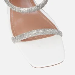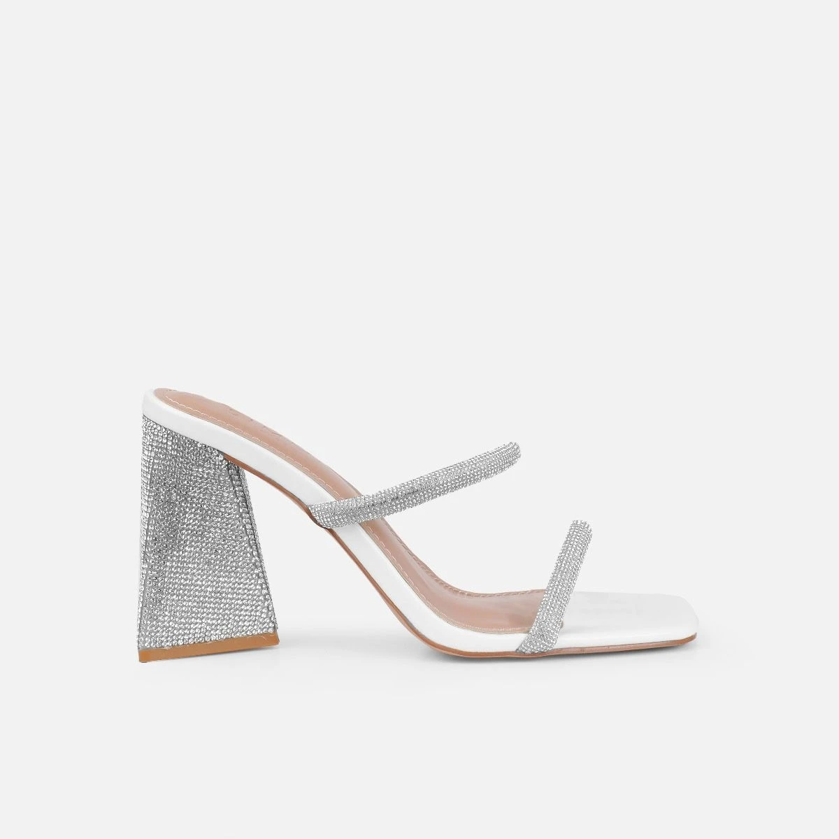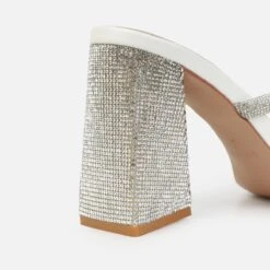 These diamante mules and you make the perfect solemates. Featuring a square toe, double diamante front straps and a diamante triangular block heel. Wear these for your next dressy occasion.