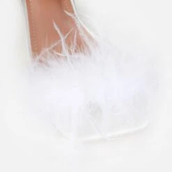 These fluffy heels are totally our love language. Featuring a square toe, fluffy front, ankle buckle strap and stiletto heel. We like these worn with our First Dance fluffy blazer dress.