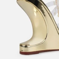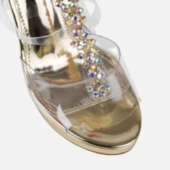 Stepping out in style in these diamante wedges. Featuring a clear front diamante strap with double buckle straps and a statement wedge. Wear these on your next special night out.
