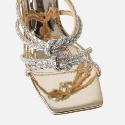 Adding the glam. Featuring a square toe, double dimante knot detail strap and stiletto heel. Pair with dimante accesories for full glam.