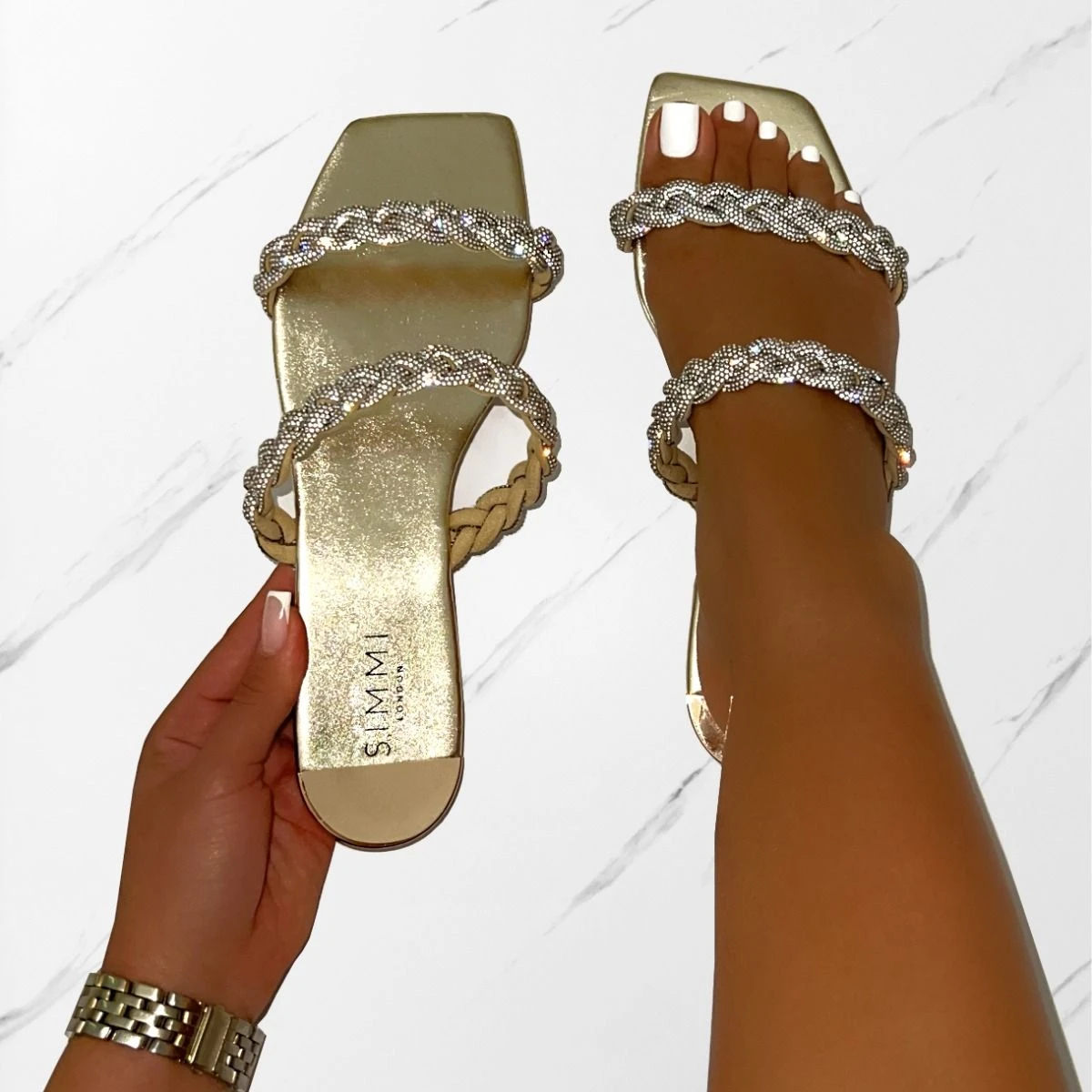 Incoming: brighter days and these diamante slides are perfect for those days! Featuring a square toe, diamante plait front straps and a gold metal plate detail. You’ll be wearing these all spring/summer long.