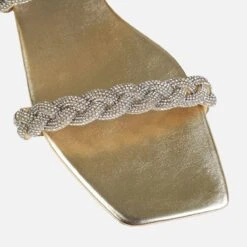 Incoming: brighter days and these diamante slides are perfect for those days! Featuring a square toe, diamante plait front straps and a gold metal plate detail. You’ll be wearing these all spring/summer long.