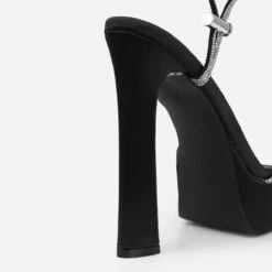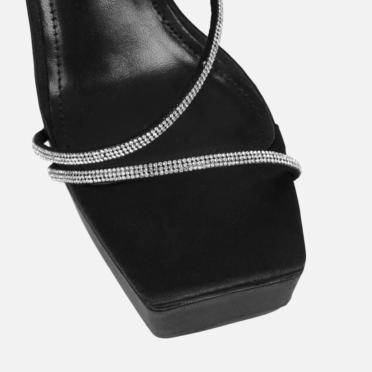 You can’t go wrong with these diamante platform heels. Featuring a square toe, diamante straps, adjustable toggle ankle strap and a block heel. Wear these with oversized blazers or faux leather jumpsuits.Â