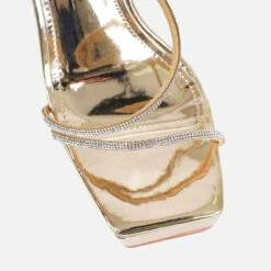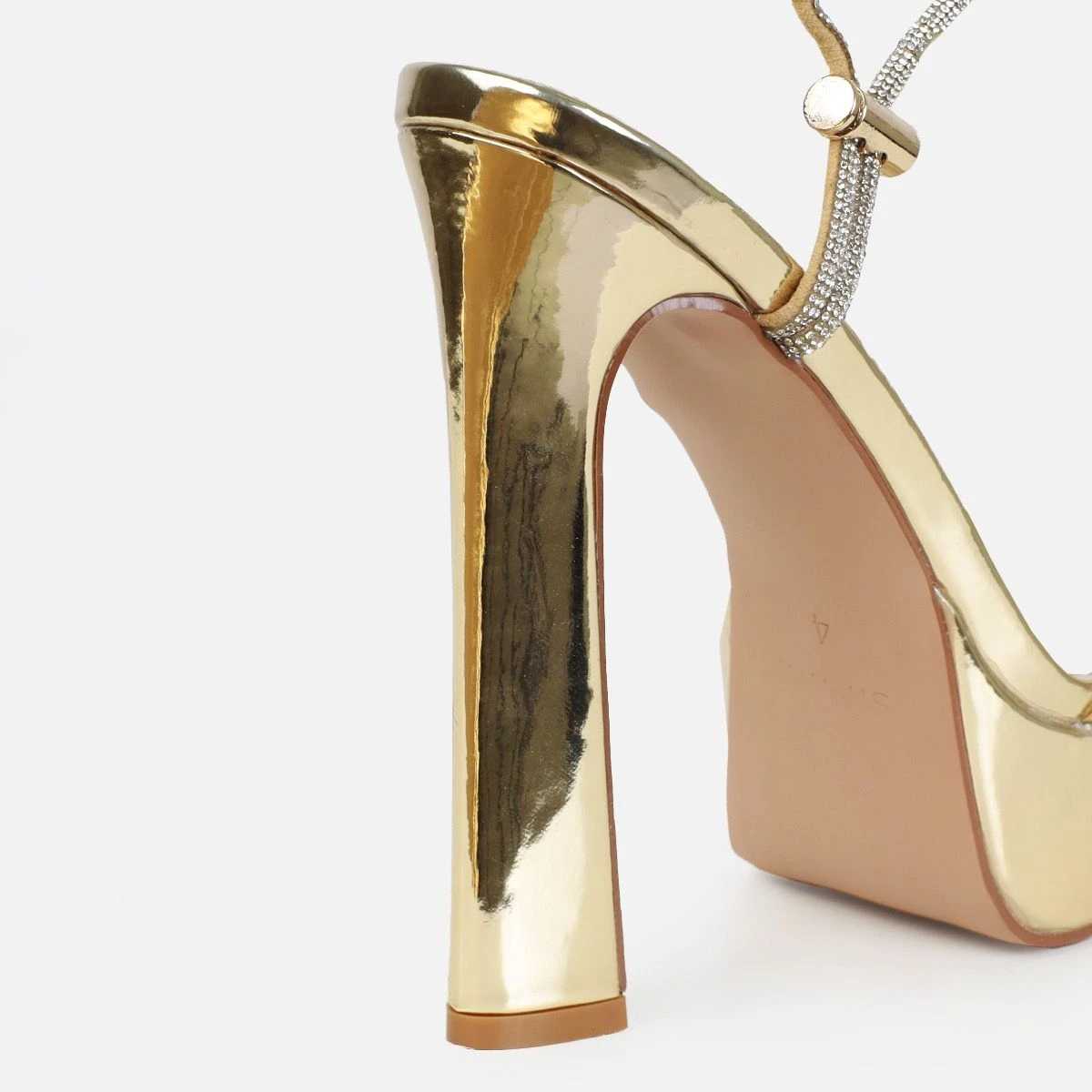 You can’t go wrong with these diamante platform heels. Featuring a square toe, diamante straps, adjustable toggle ankle strap and a block heel. Wear these with oversized blazers or faux leather jumpsuits.Â