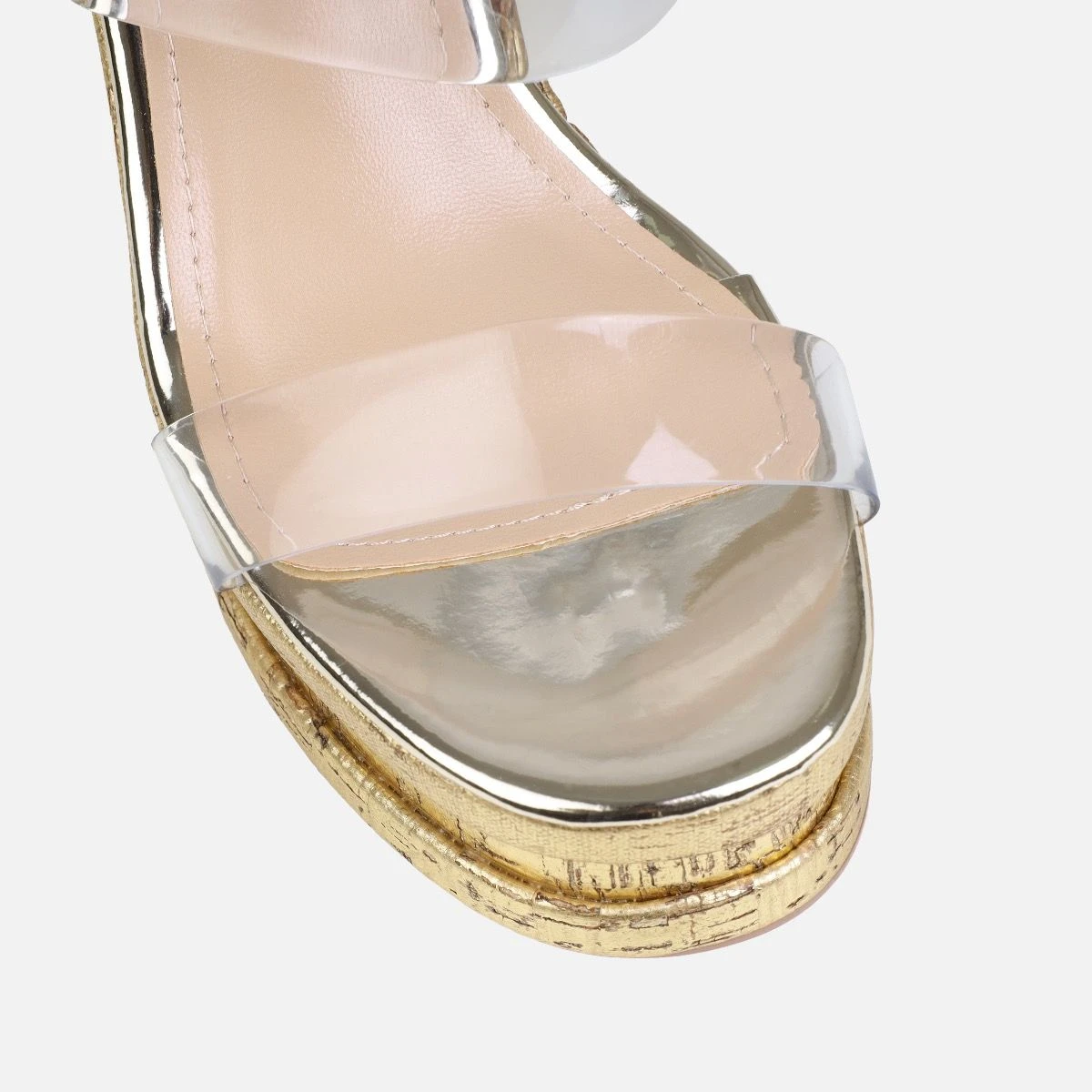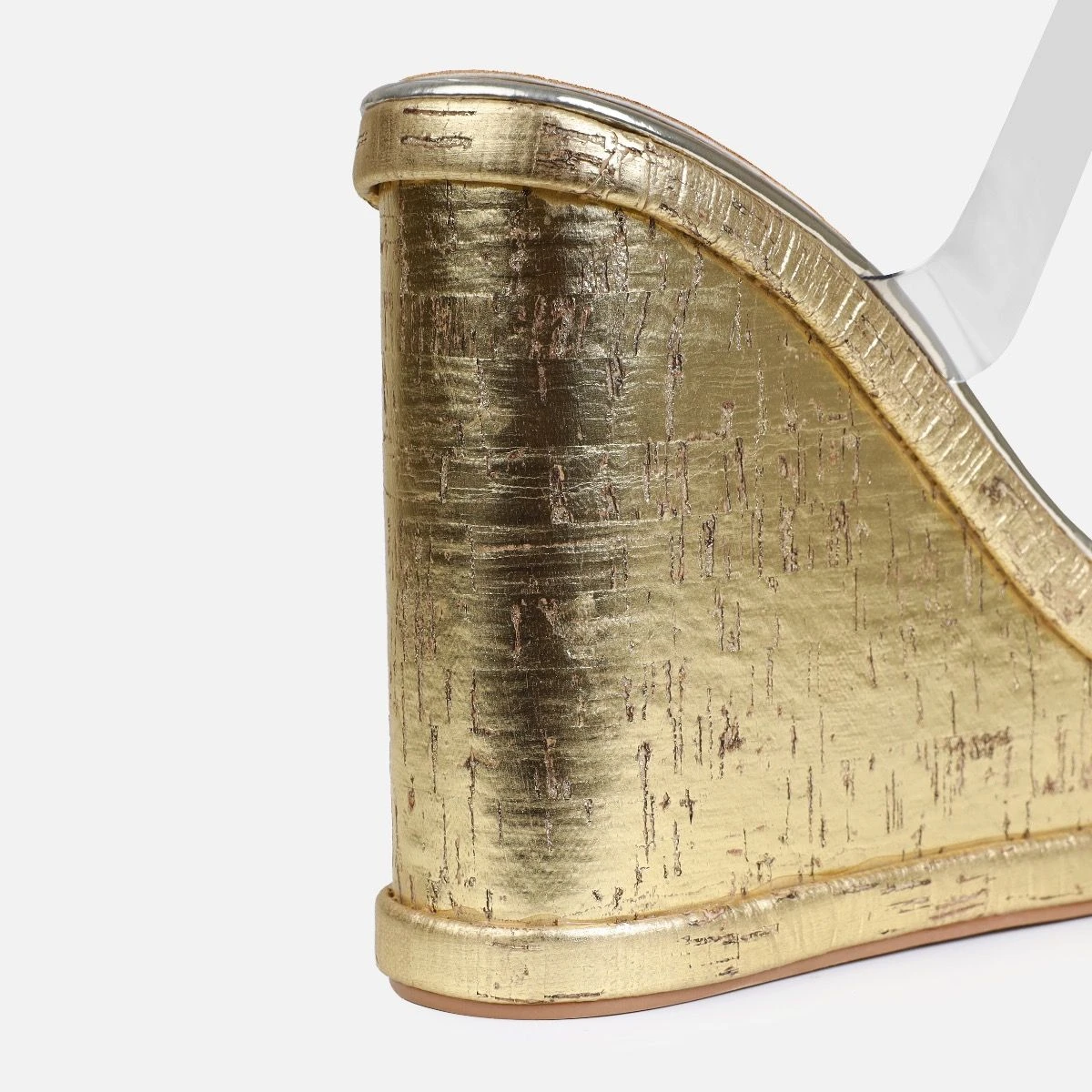 The perfect wedges don’t ex… Featuring a rounded toe, clear double straps and a metallic espadrille wedge. You’ll be wearing these at pool parties, brunches, dressy summer occasions and more!