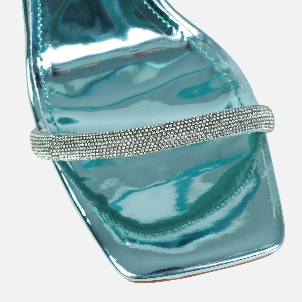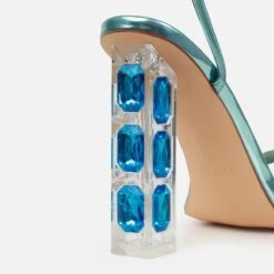 Date night looks in these diamante block heels. Featuring square toe, front strap, ankle buckle strap and a block gem heel. Wear with your fave evening fits.