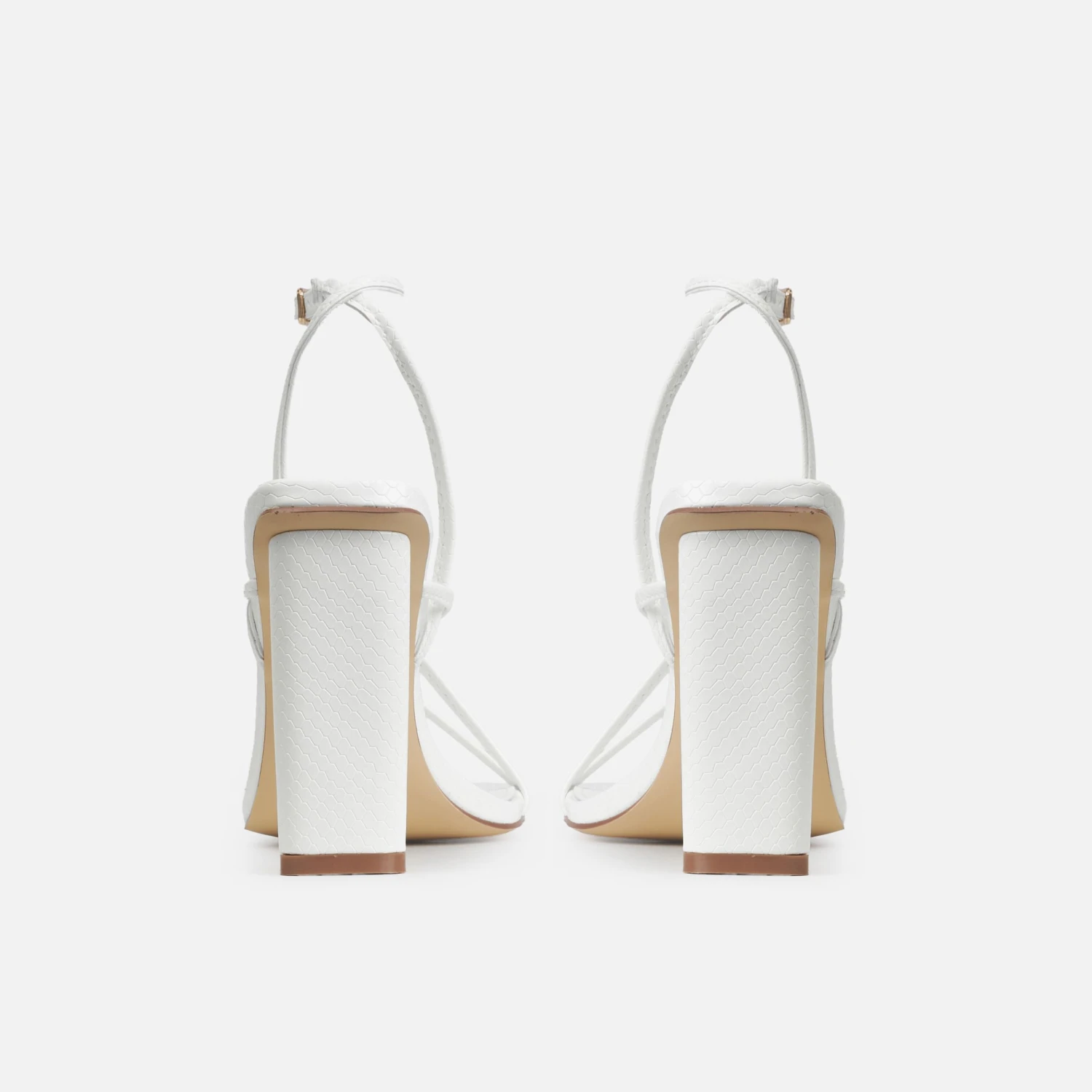 these not so basic basics! featuring a square toe, crossover front strap, ankle buckle strap and a slim block heel. wear these from day-to-night.