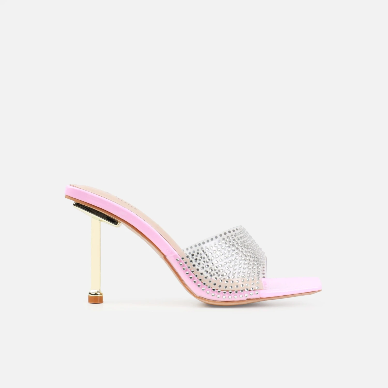 girl about town heels. featuring a square toe, clear diamante front and a stiletto mid heel. wear these on your next night out.