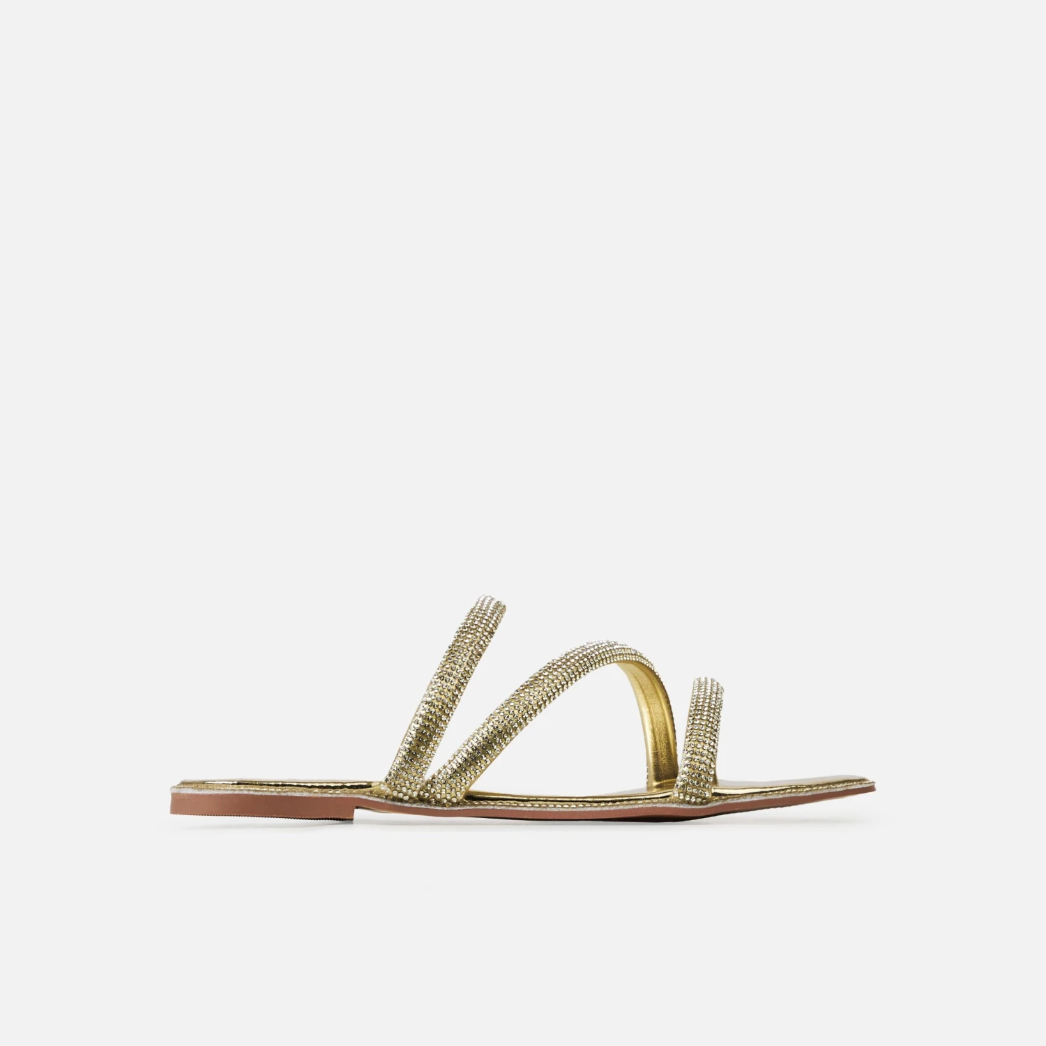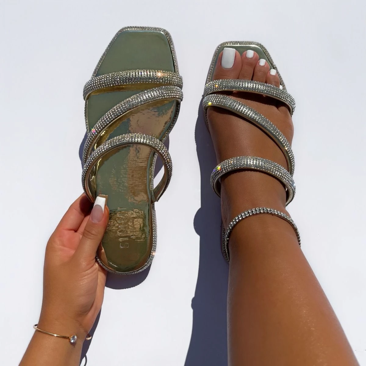 invest in these flat sandals babe! featuring a square toe and multi diamante front straps. wear these to add some sparkle to any look!