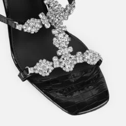 deluxe edition heels. a square toe, diamante front multi straps, buckle straps and a stiletto heel. wear these for all those special occasions.