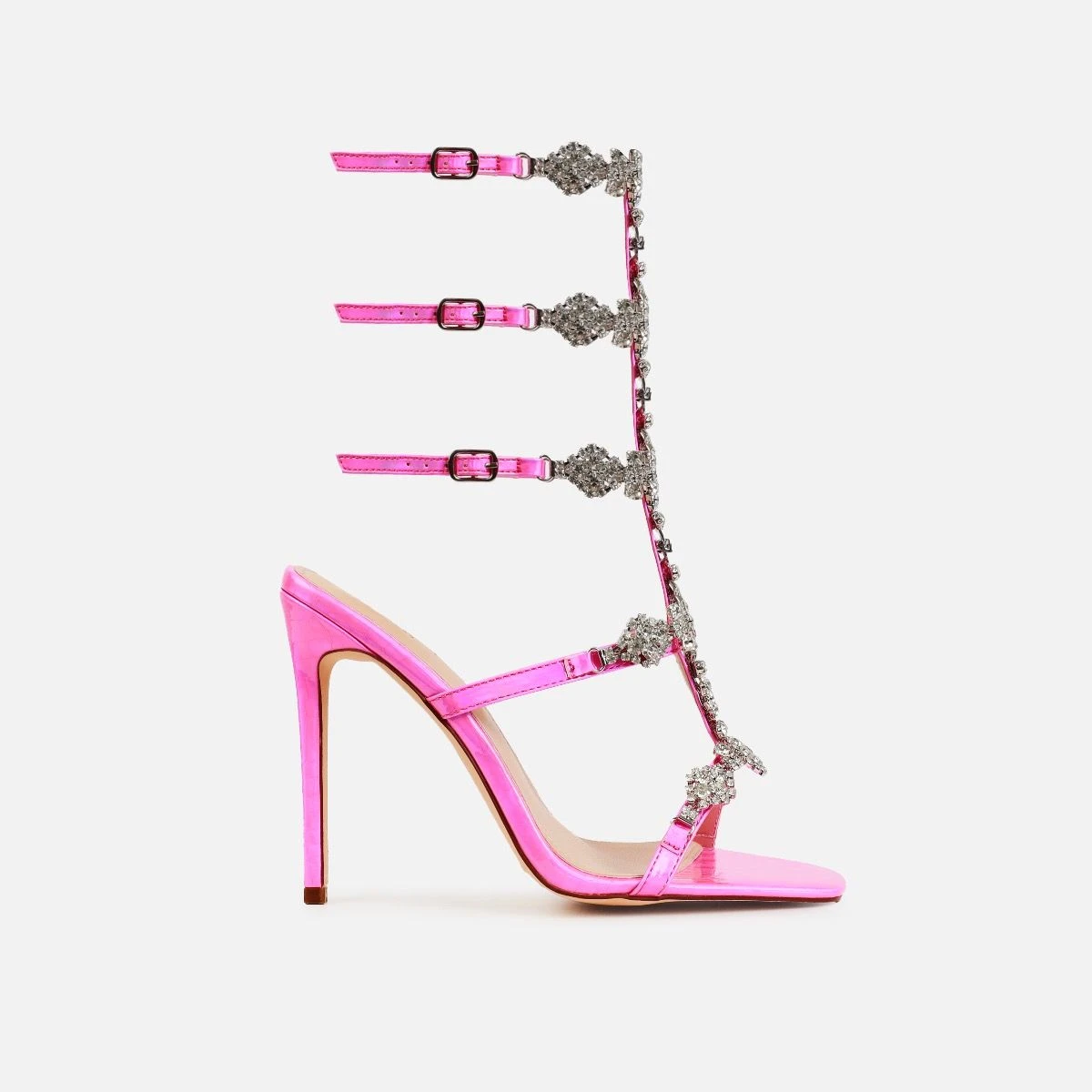 deluxe edition heels. a square toe, diamante front multi straps, buckle straps and a stiletto heel. wear these for all those special occasions.