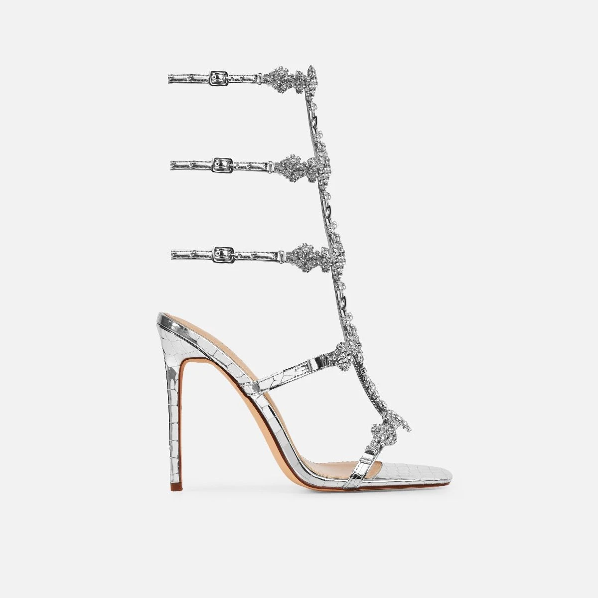 deluxe edition heels. a square toe, diamante front multi straps, buckle straps and a stiletto heel. wear these for all those special occasions.