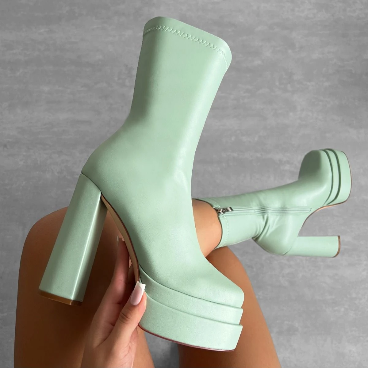 double up in these ankle boots babe. featuring a double platform sole, inside zip and a block heel. style them up with your fave faux leather looks.