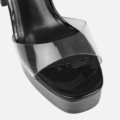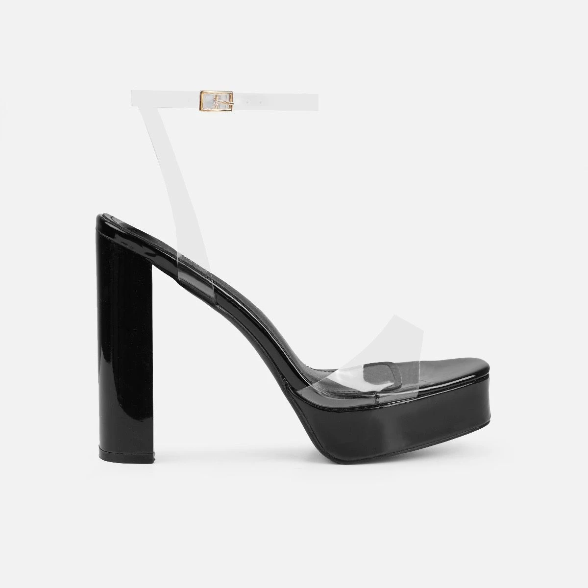 We can’t take our eyes off of these platform block heels. Featuring a rounded square toe, clear front strap and ankle buckle strap, platform and a block heel.Â