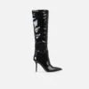 Stealing the spotlight in these knee high boots. Featuring a pointed toe, inside zip, side pull tabs and a stiletto heel. Wear these with a mini dress/skirt co-ord.