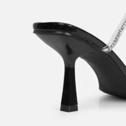 Show up and show out in these clear diamante mid heels. Featuring a square toe, clear diamante toe loop and front straps and a mid heel. We like these worn with satin slip dresses and oversized blazers.