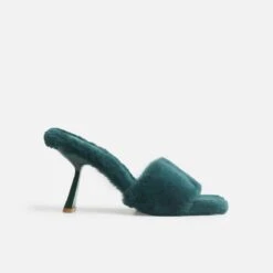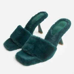 keep your feet cosy yet stylish in these fluffy mules. featuring a square toe and stiletto heel. style yours with a mini dress or slit trousers and top.