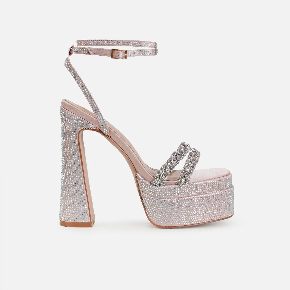 For the girls who like to steal the show. Featuring a diamante double platform, block heel and plaited front straps. You’ll make a statement in these platform heels wherever you go.