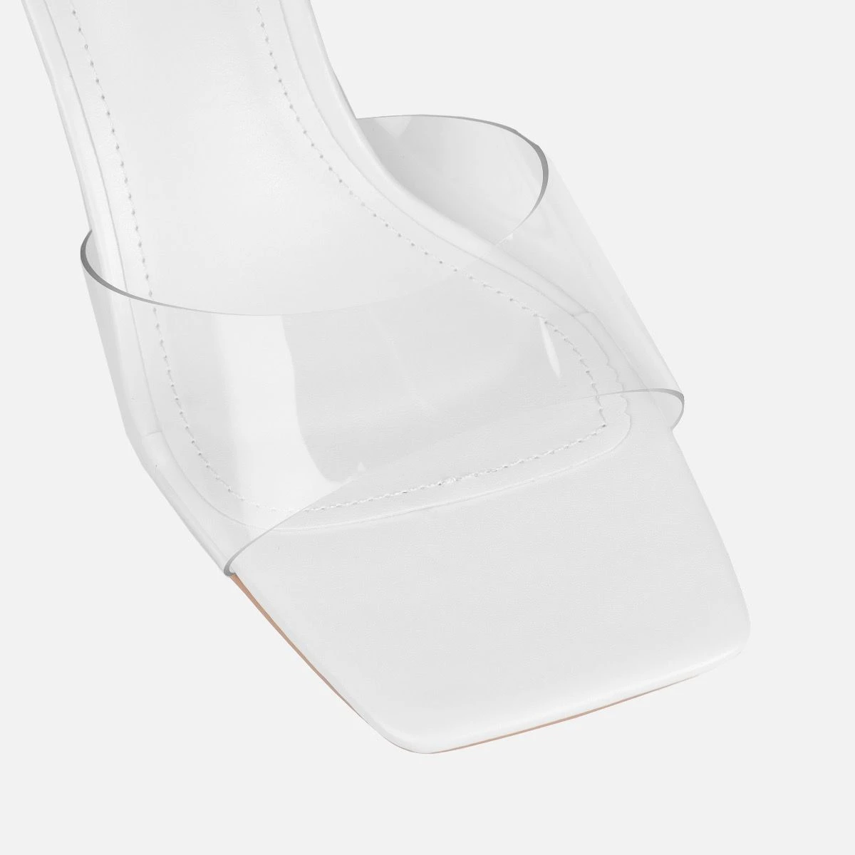 Step out in these mid heel mules. Featuring a square toe, clear front and a mid heel. The perfect mules to wear from day-to-night.