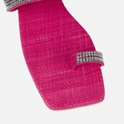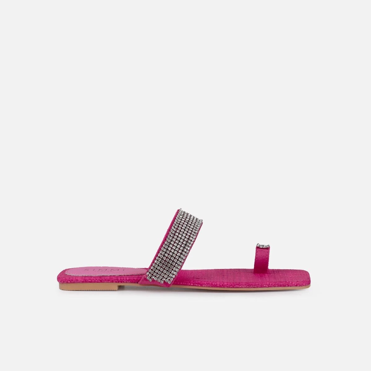 Make these raffia diamante flat sandals yours! Featuring a square toe, diamante toe loop, diamante front strap and raffia sole. Team them up with matching diamante or raffia accessories.