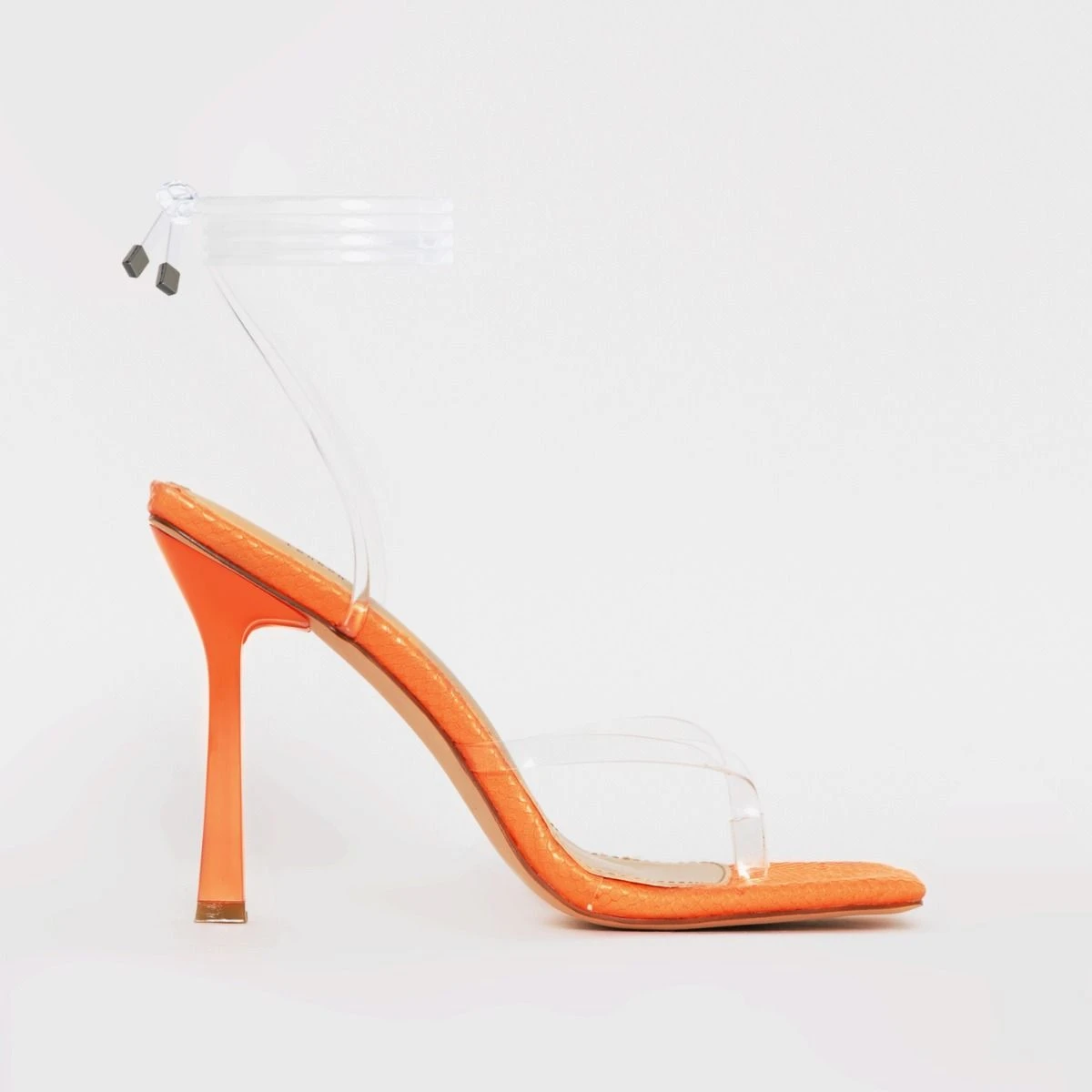 lace these up high. featuring clear lace ups, square toe and a stiletto heel. team with your fave mini dress.