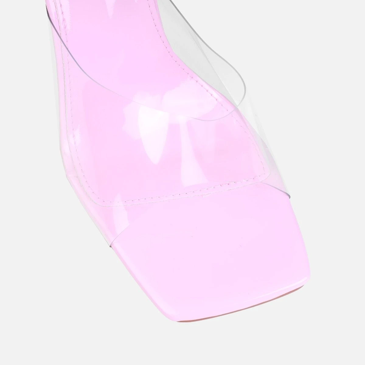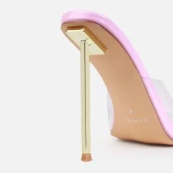 These stiletto mules are a style for everyone. Featuring a square toe, clear front and a gold stiletto heel. We like these worn with dresses and cargo/tailored trousers.