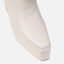your autumn/winter shoedrobe needs these western calf boots. featuring a pointed toe, platform, western print, side pull tabs and a block heel. style them up with a mini dress and oversized blazer.