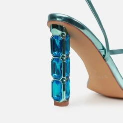 It’s all in the details with these gem block heels. Featuring a square toe, strappy front, ankle buckle strap and a trianglular block heel with large gems. Wear these on your next dressy occasion.