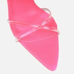 Add a pop of colour to your fits this season in these neon heels. Featuring a pointed toe, clear crossover front straps, ankle buckle strap and a clear stiletto heel. Add a matching neon bag to make your outfits really stand out!