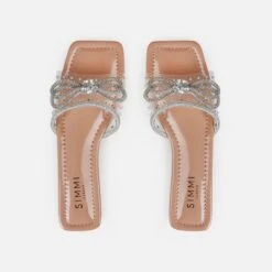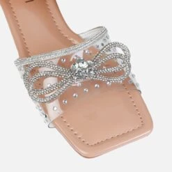 It’s always sparkle season at SIMMI and these flats are giving us all the sparkles. Featuring a square toe, diamantes and diamante bow trim on a clear front strap. You’ll be wearing these for those dressy occasions.