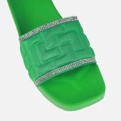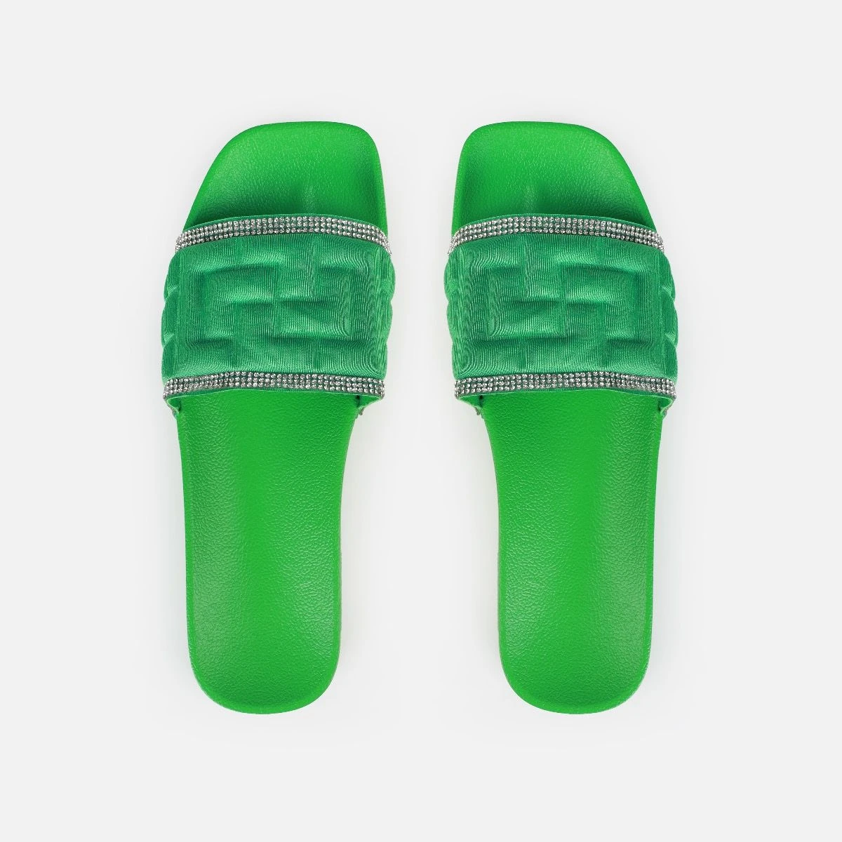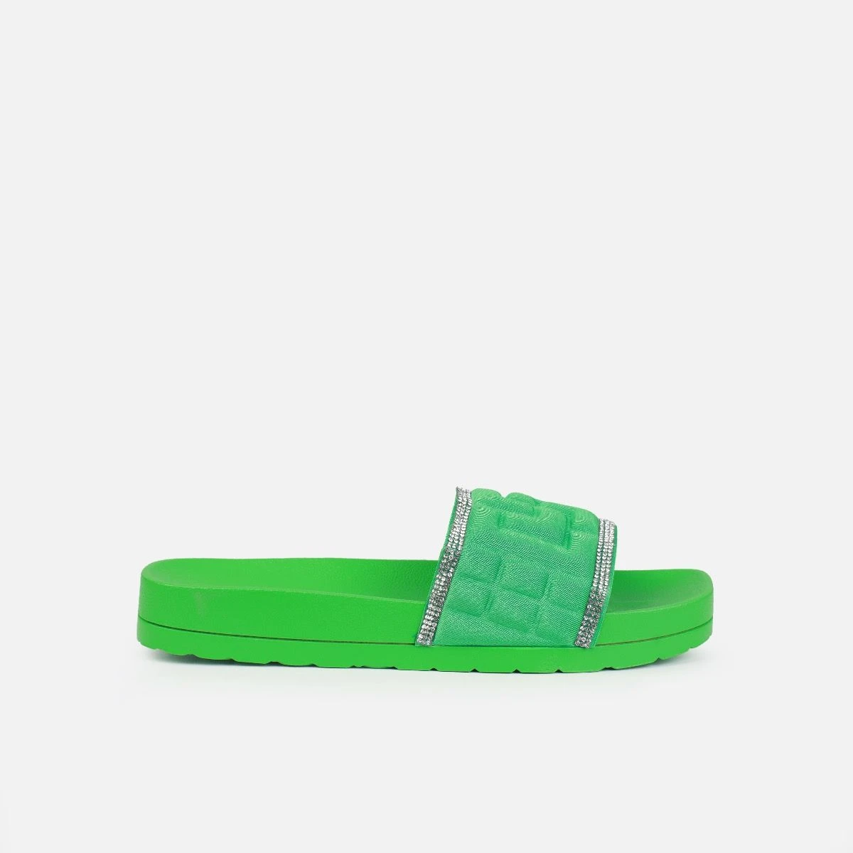 The perfect slides have arrived! Featuring a square toe, embossed pattern with diamante trims and a chunky flat sole. Wear these on holiday and around the house!
