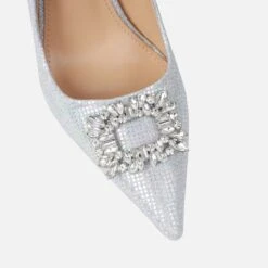 Add a touch of sparkle to your next occasion outfit with these court shoes! Featuring a pointed toe, diamante trim and stiletto heel. Pair our diamante court shoes with matching shimmer accessories and be the best-dressed guest in the room.